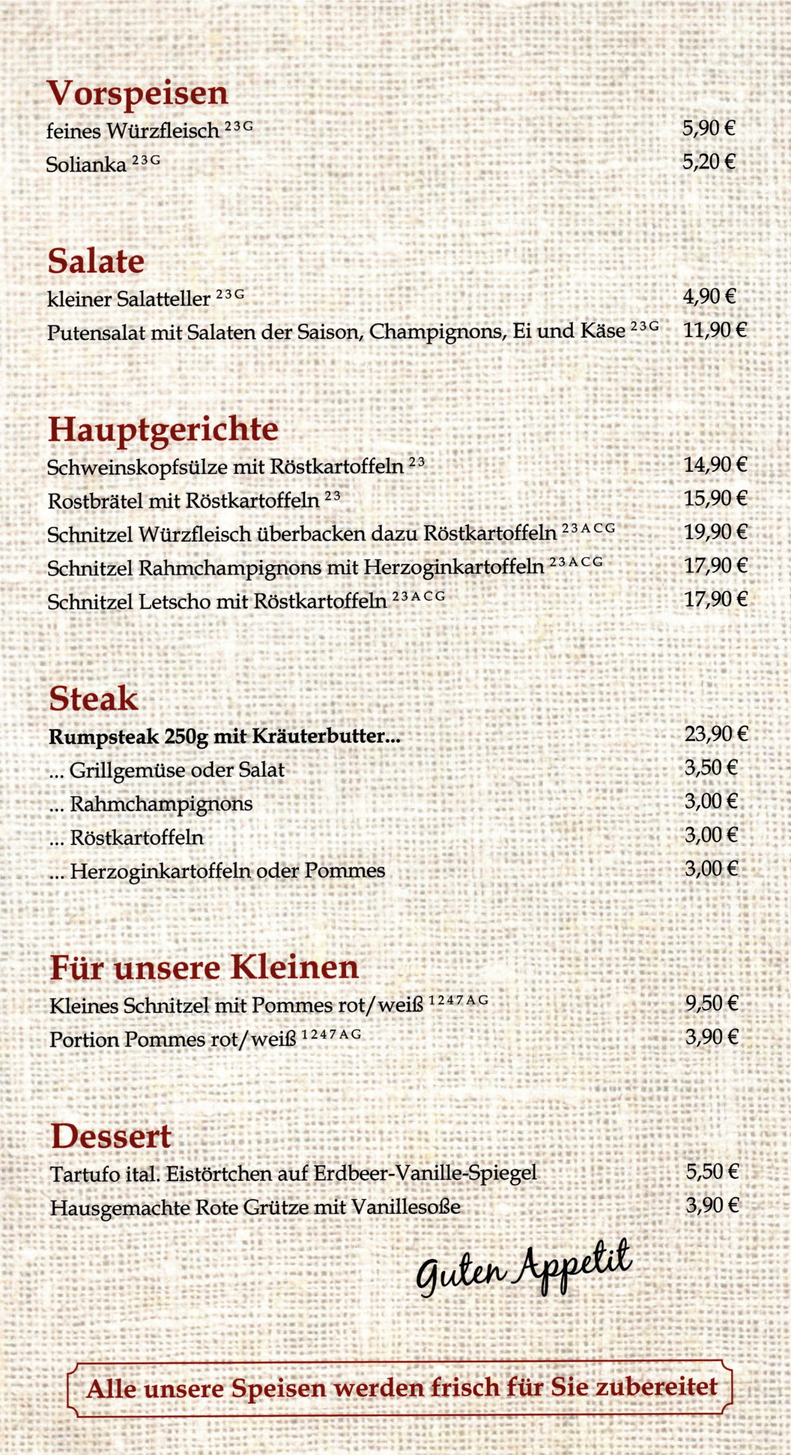 Die Speisekarte kann saisonal sowie an Feiertagen abweichen !